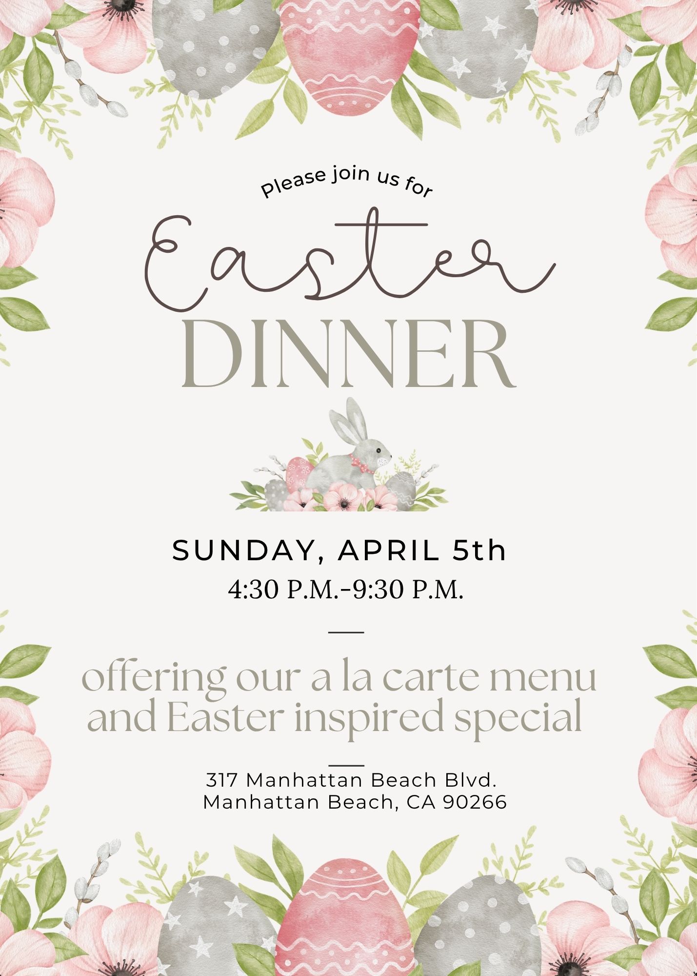 We are offering our regular dinner menu in addition to our Easter inspired specials